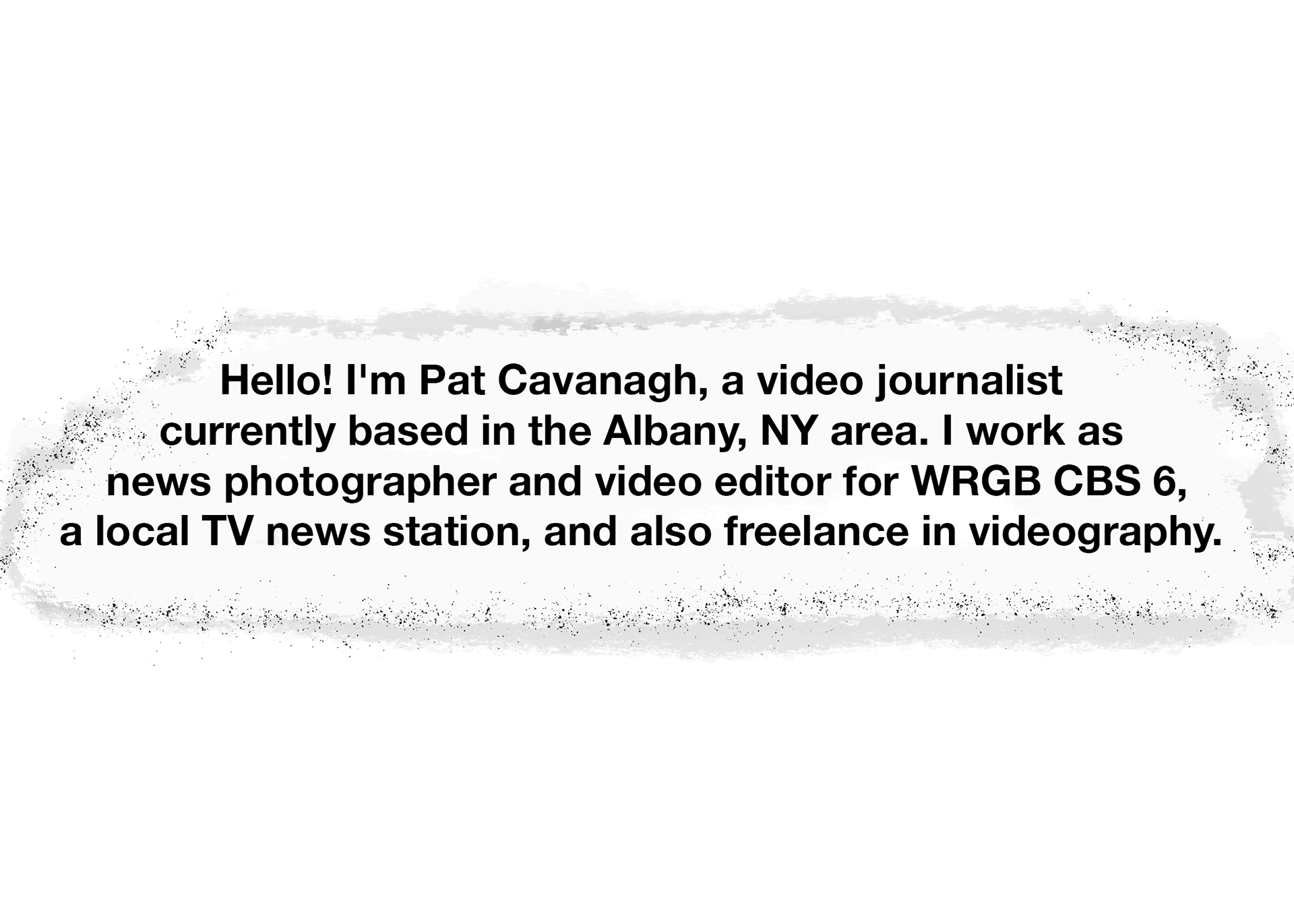 Hello! I'm Pat Cavanagh, a video journalist currently based in the Albany, NY area. I work as a news photographer and video editor for WRGB CBS 6, a local TV news station, and also freelance in videography.